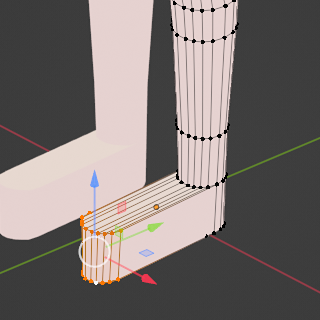見ての通り伸ばした脚の全面を押し出して作成。 この後に作る手と同様に